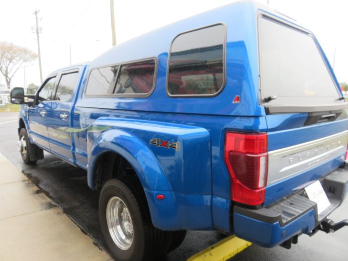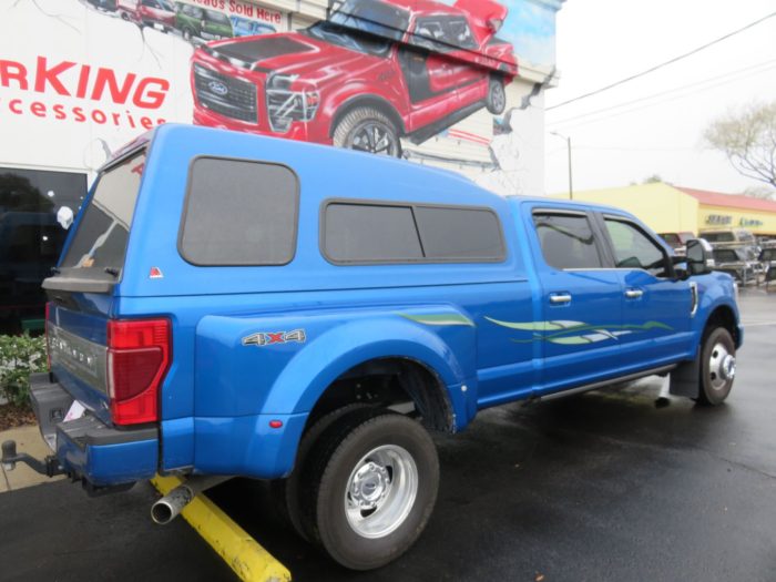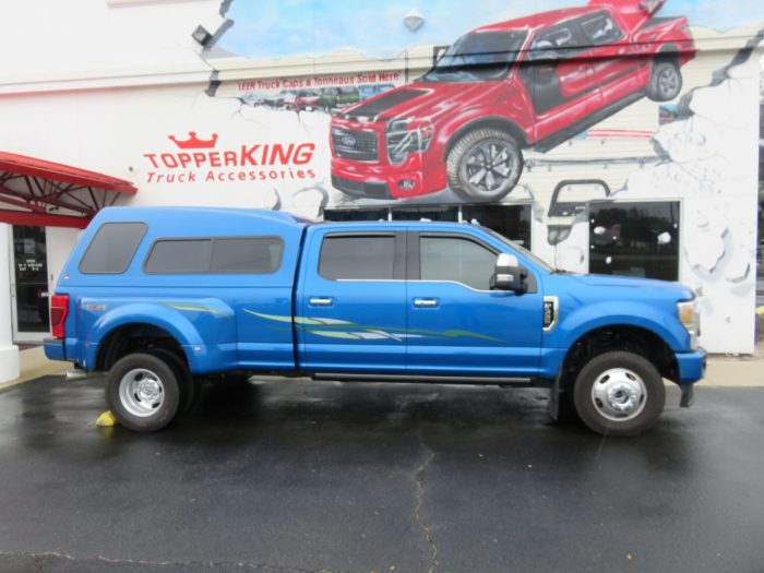 We recently had the pleasure of accessorizing this Blue 2020 Ford F350 with a brand new LEER 122 fiberglass topper and Vehicle Graphics.