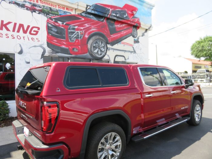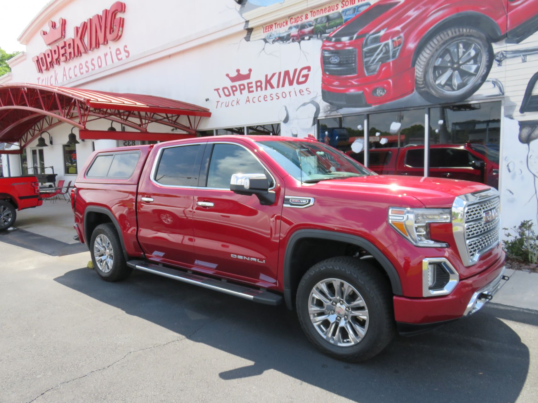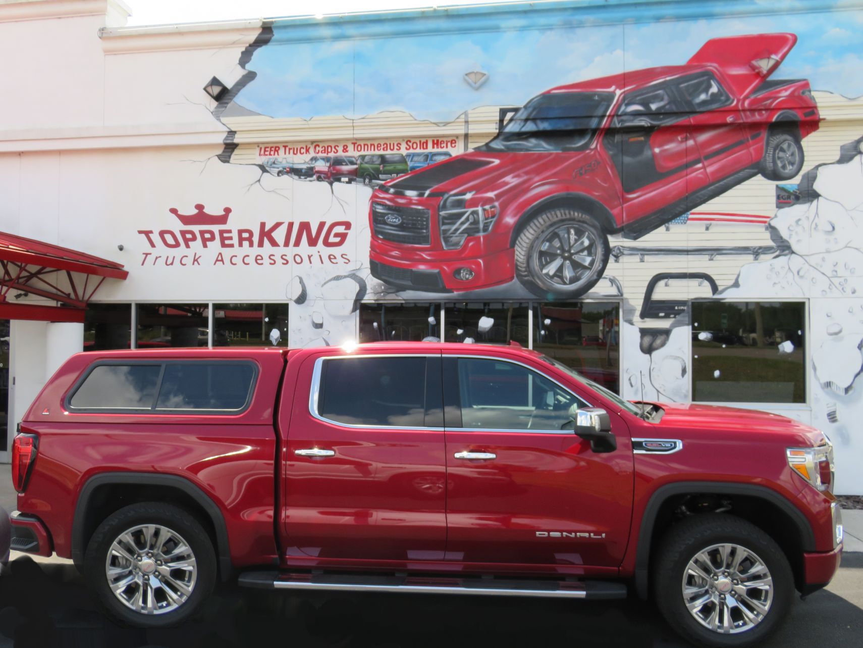 We recently had the pleasure of accessorizing this Valentine red 2019 GMC Sierra with a brand new LEER 100XR fiberglass topper and Running Boards.
