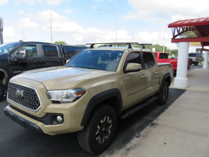 We recently had the pleasure of accessorizing this tan 2020 Toyota Tacoma with a brand new Yakima Racks and Stainless Steel Nerf bars.