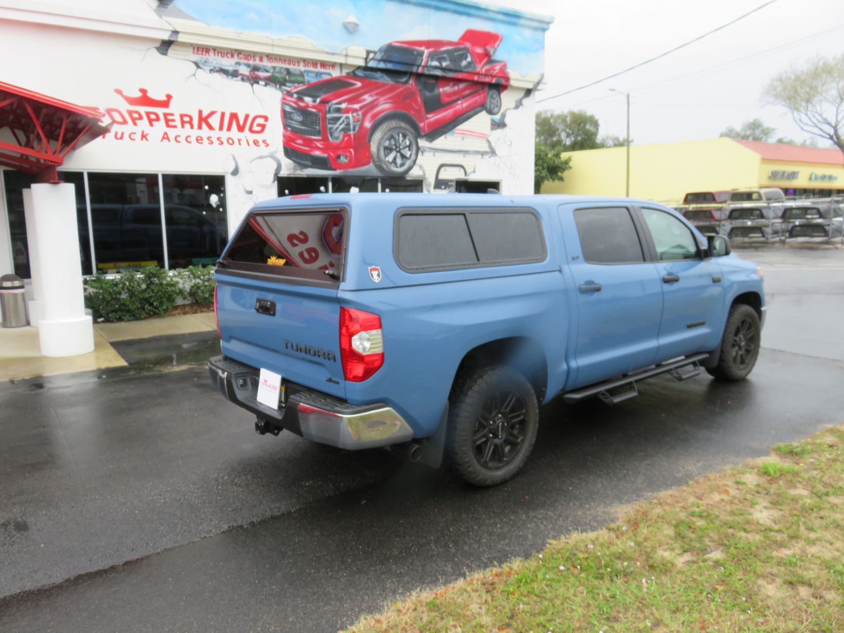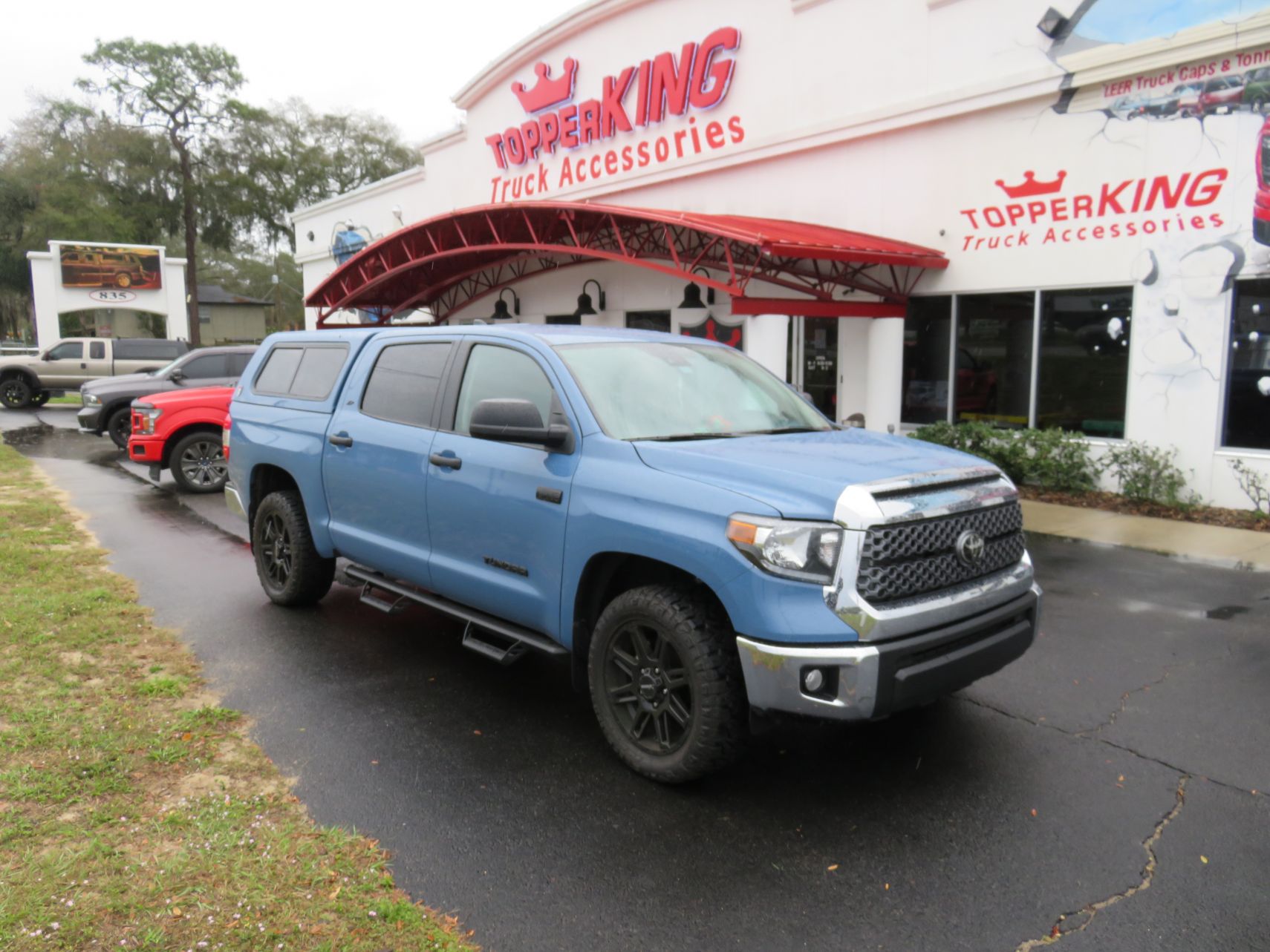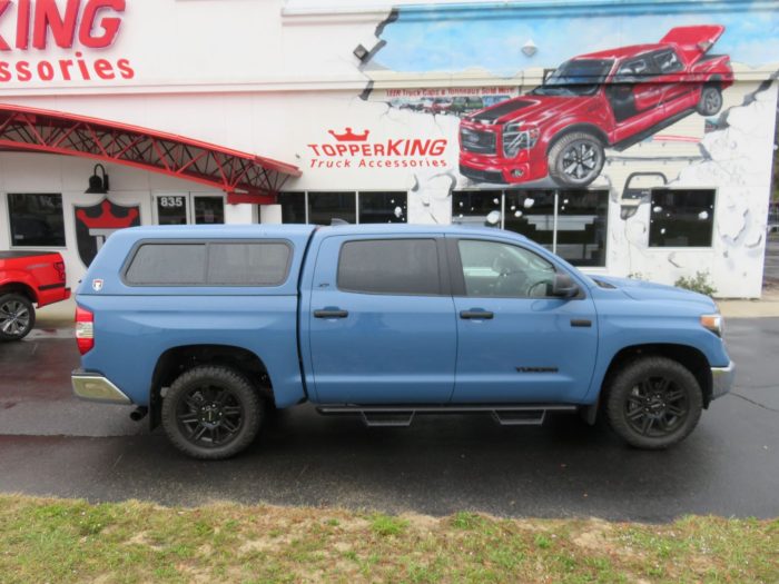 We recently had the pleasure of accessorizing this blue 2020 Toyota Tundra with a brand new TK Defender fiberglass topper and Hitch.